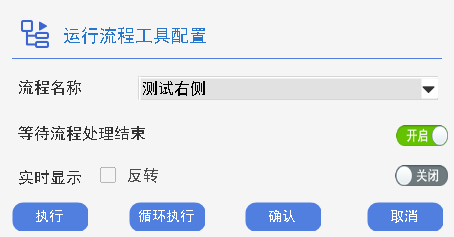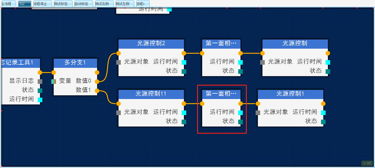 通过运行流程算子调用左侧定位流程,设置为等待流程结束,执行结束后同样使用光源控制算子将光源关闭