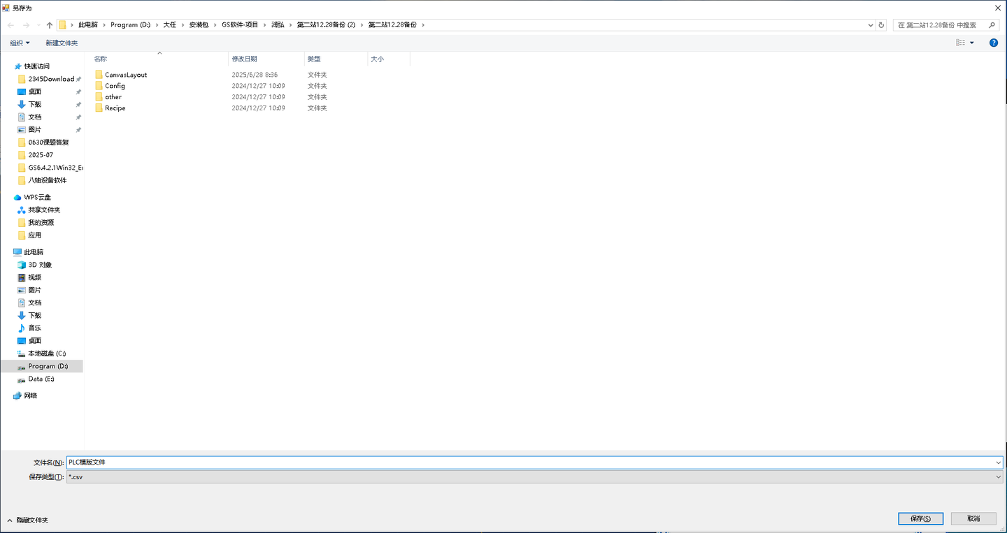 (4)打开配置界面会给出默认文件,下载模版文件另存为一份,点击保存,模版文件默认使用PLC品牌为三菱