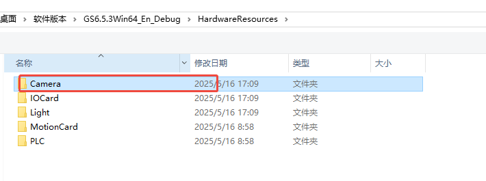 点击相机路径选择,路径跳转到软件根目录选择HardwareResources文件夹中的Camera文件夹