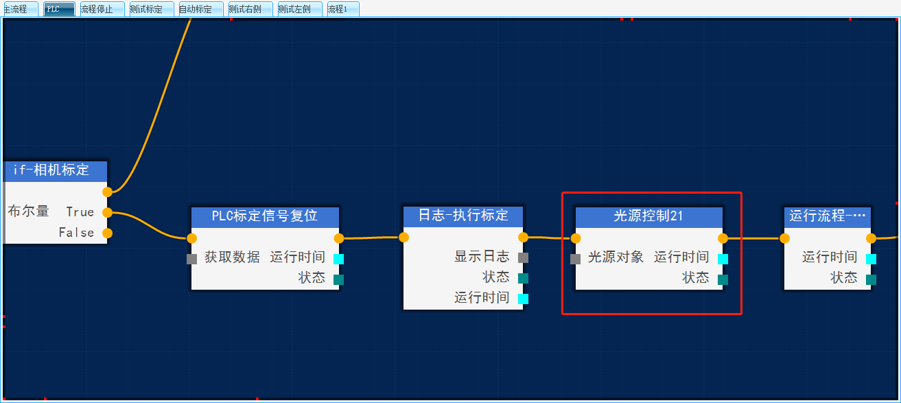 打开光源后通过运行流程调用自动标定流程执行并等待执行完成