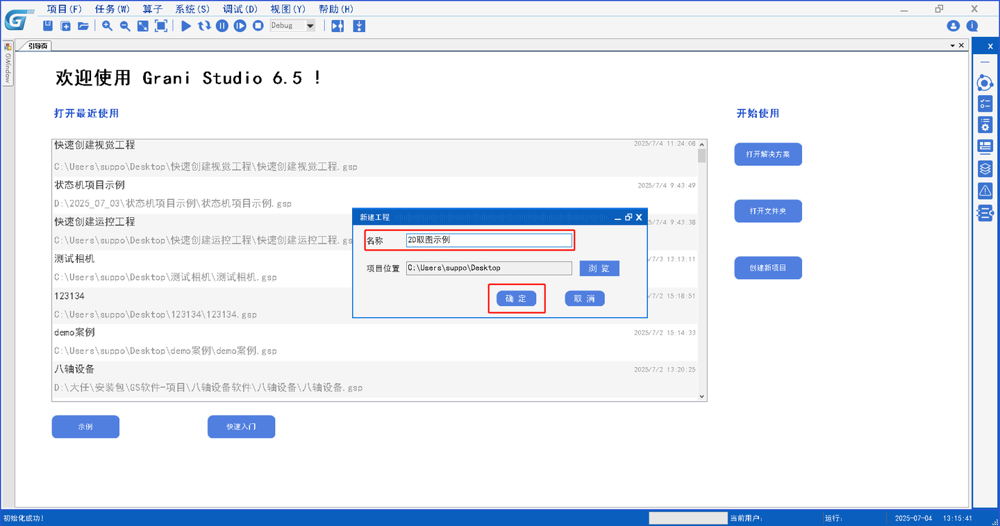 根据相机型号选择Camera文件夹中对应的驱动库,加载显示到相机资源管理器列表,点击执行打开相机,同时会将资源给到主任设计器。