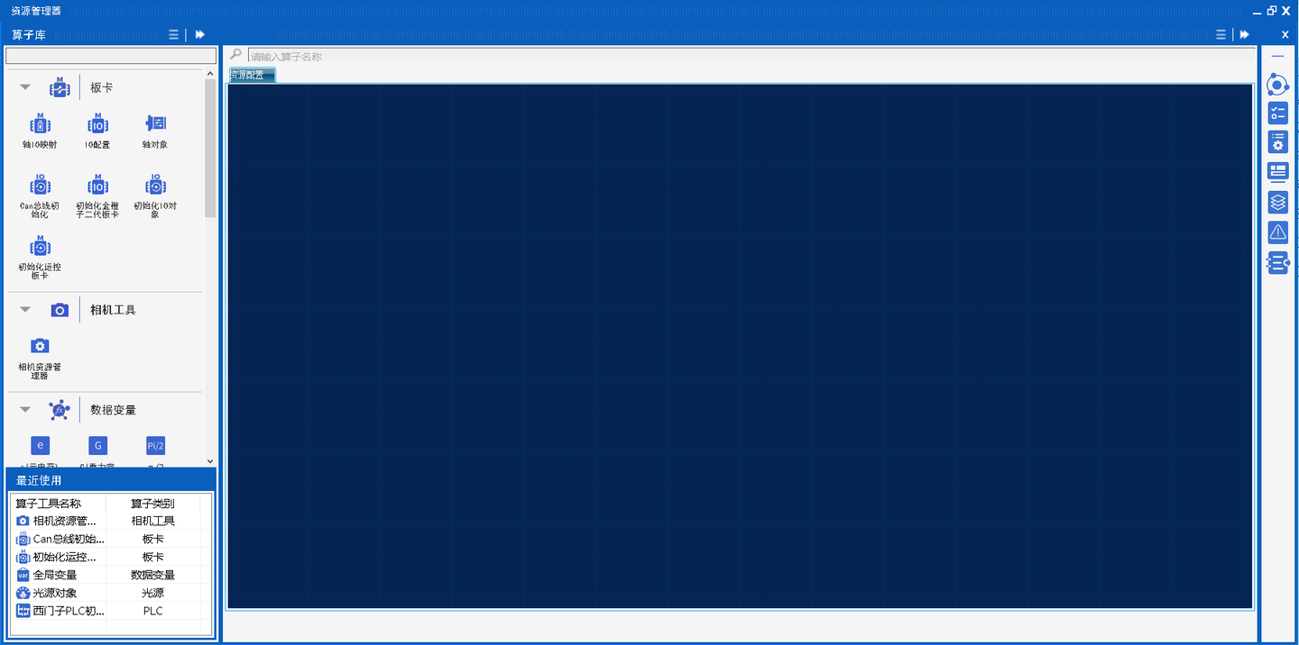 提供的主任务设计中的算子主要是同于实现控制逻辑的编写,其包含的算子被目前被分为板卡控制、相机工具、坐标变换、数据处理、检测识别、通用工具、几何测量、数学操作、图像处理、光源工具、逻辑流程、和PLC共12个模块,根据这些大的模块名称方便用于查找想使用的算子。