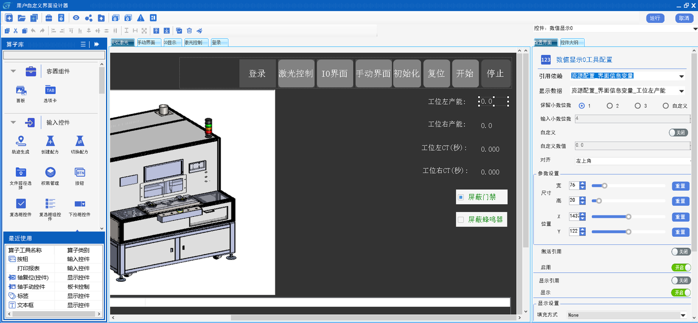记录CT和产能功能通过数值显示控件显示,如下图: