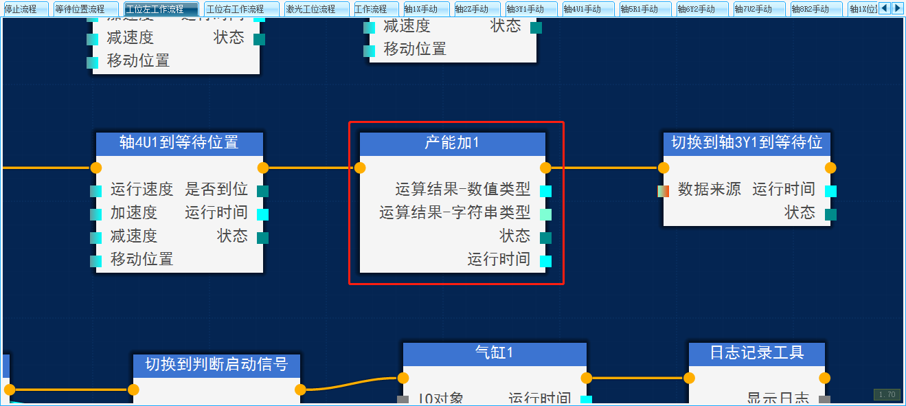 通知已经到位:通知到位信号是根据资源管理器中流程变量内的工位左/右激光到位变量实现,通知到工位左/右工作流程。