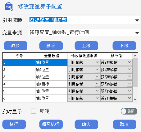 在主任务设计器已经设计了通过修改变量将实际位置给到对应轴参数,如下图: