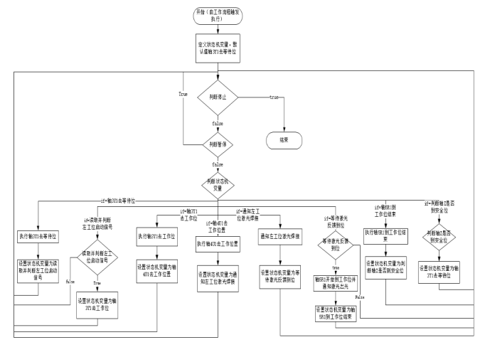 轴到等待位置:等待位置流程同样使用了状态机运行模式,通过步序和存储变量控制流程运行,同时实现暂停继续。