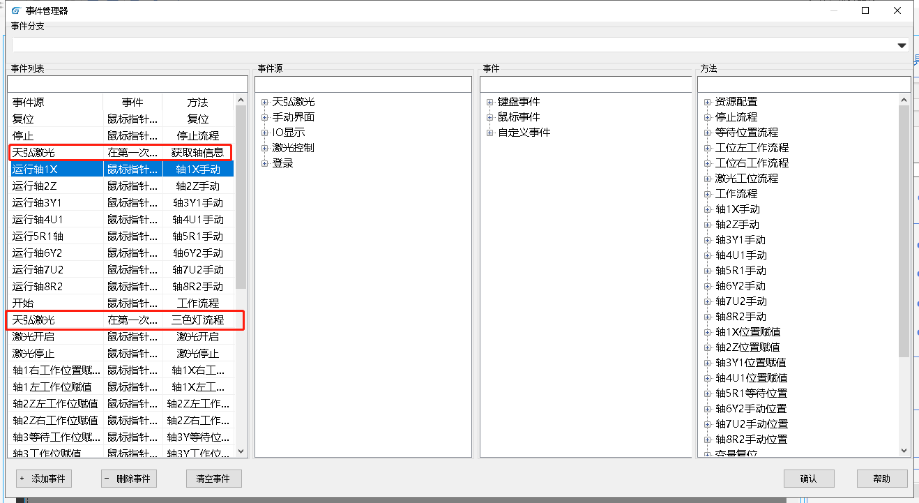 打开事件管理器,将此按钮绑定主任务设计器的轴1X手动流程