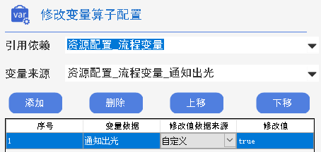 判断是否出光:等待出光信号是根据资源管理器中流程变量内的通知出光变量实现,由工位左/右工作流程反馈。