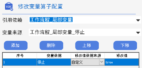 设置停止变量true:工作流程执行结束将局部变量-停止赋值为true,工作流程执行结束。