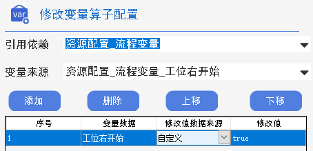 判断轴Z到安全位:等待激光流程通知到等待位是根据资源管理器中流程变量内的工位右激光到达等待位变量实现,需要等待Z轴到安全位置后才能进行下一步动作,对此变量赋值为true,通过条件分支工具对此变量进行判断是否进行下一步动作实现。