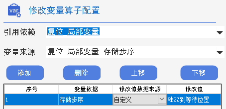 复位完成后完成了复位中轴Z复位步序,通过修改变量算子修改存储步序结果,从而在下一次循环中执行下一步动作