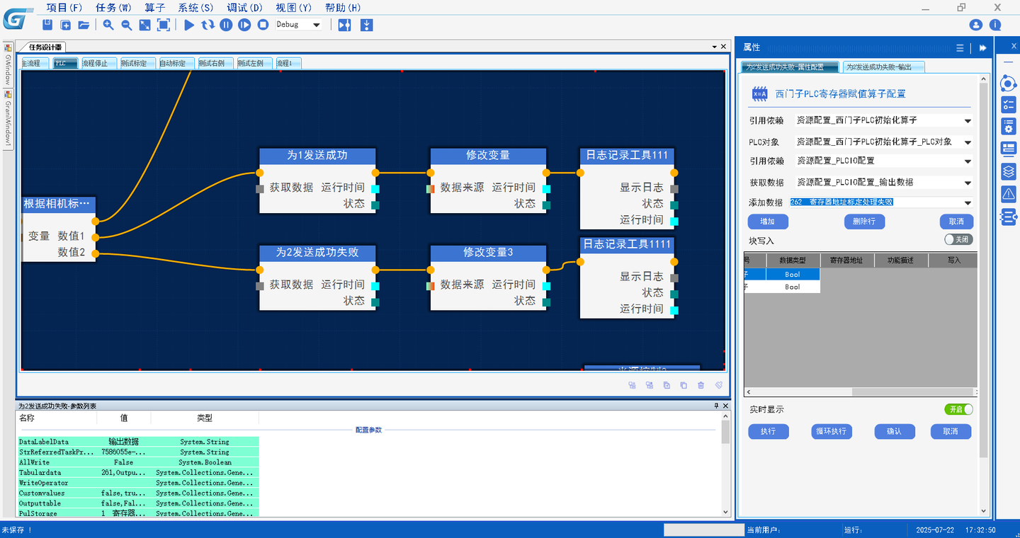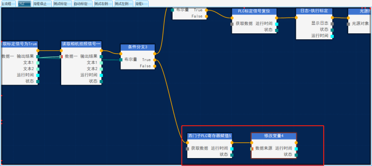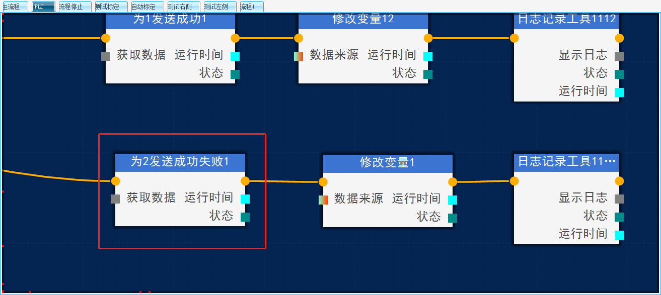 如果不成功使用日记记录并将相机处理状态变量赋值为2,PLC流程通过多分支工具对此变量进行判断从而确定右侧定位失败