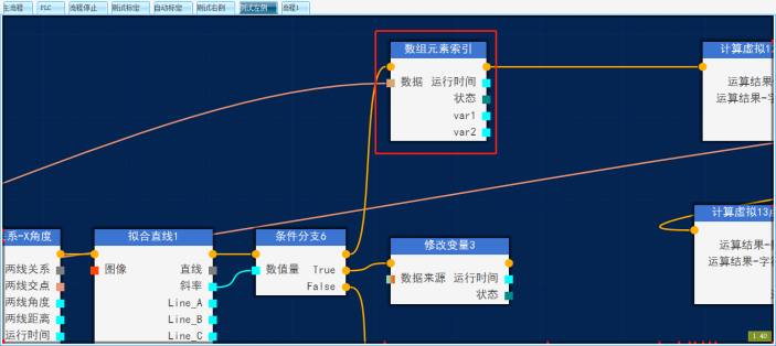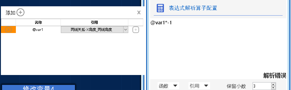 小于0使用表达式解析算子把角度*-1,引用两线角度,将计算值通过修改变量算子赋值给角度变量,