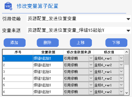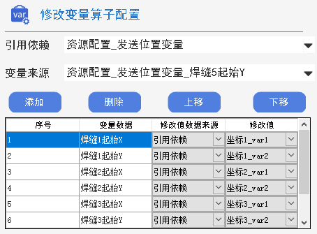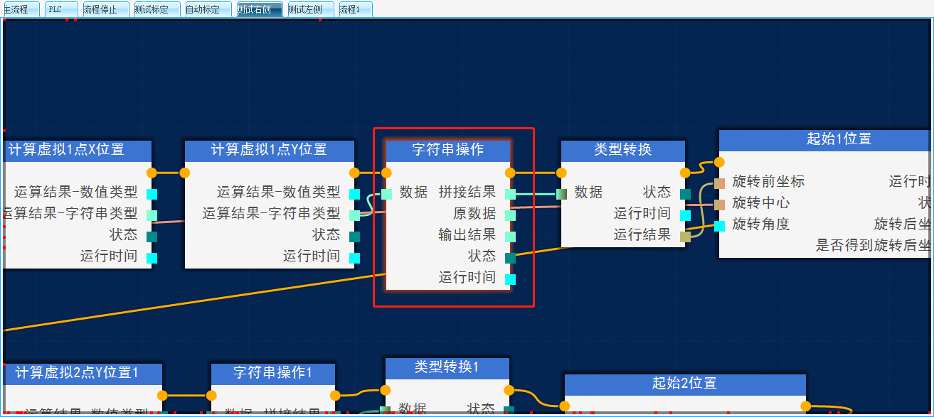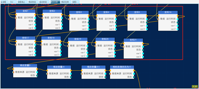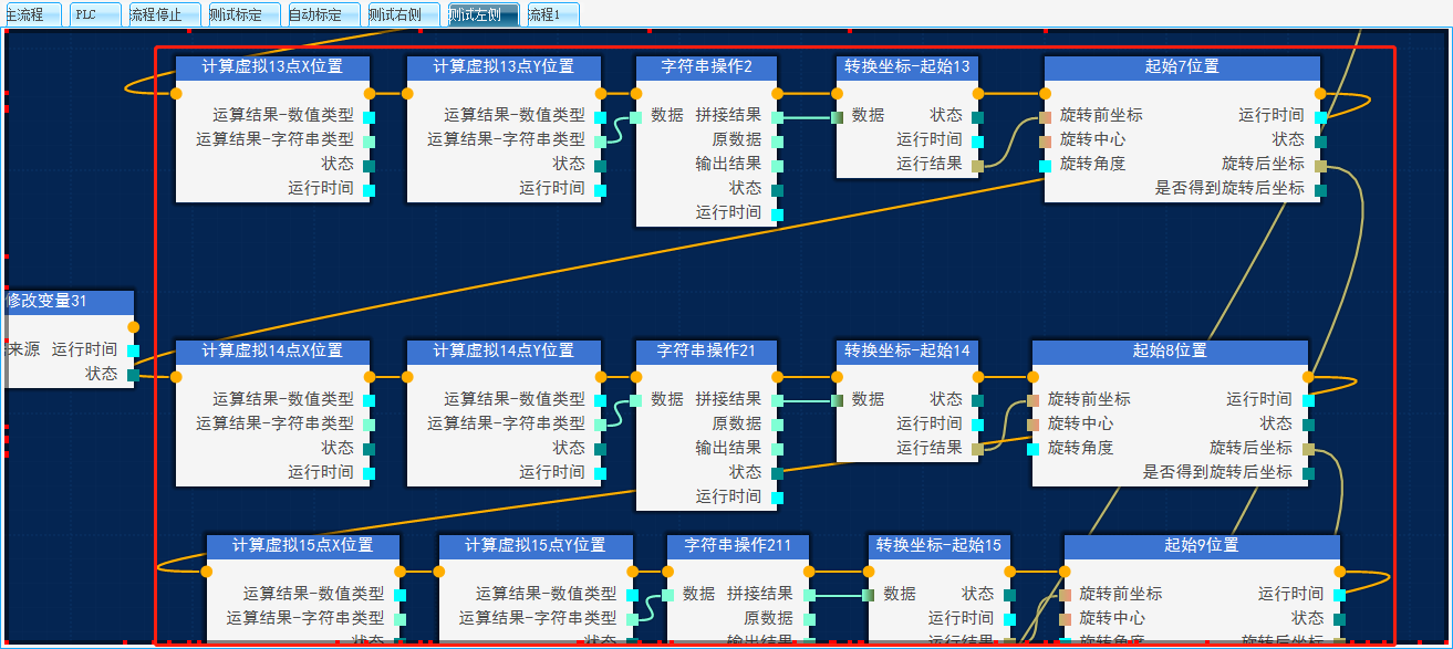 将提取出的XY值通过修改变量算子给到发送位置变量中,同时将拍照次数变量设置1,表示右侧完成定位,下次触发拍照运行左测定位流程