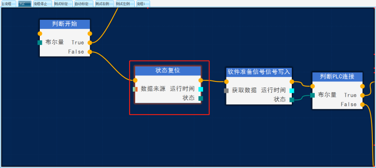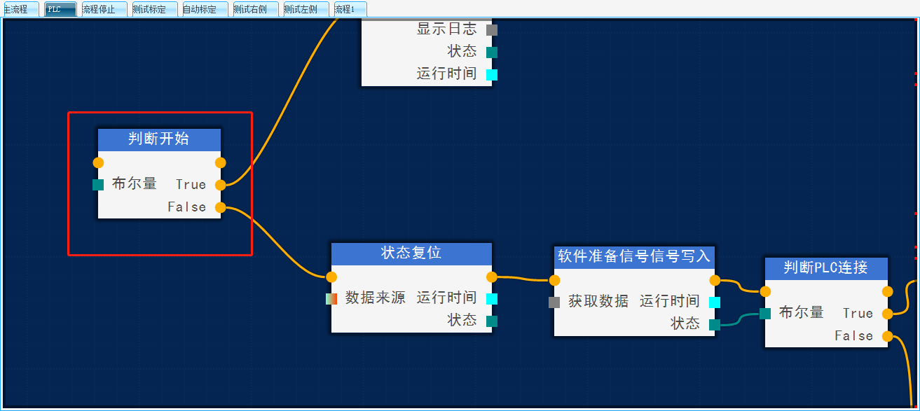 步骤1.判断开始变量:开始变量在打开软件时默认值为false,为false时说明设备没有在运行,通过条件分支判断开始变量是否为true