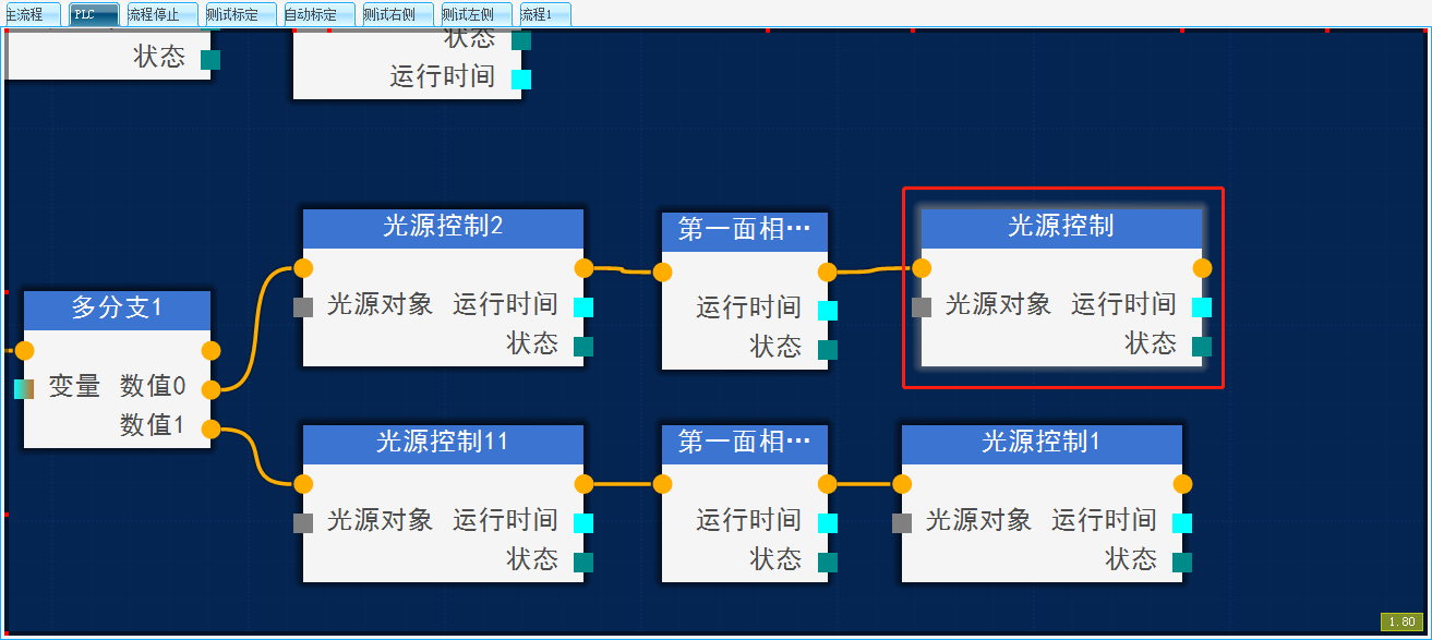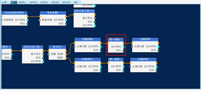 通过运行流程算子调用左侧定位流程,设置为等待流程结束,执行结束后同样使用光源控制算子将光源关闭