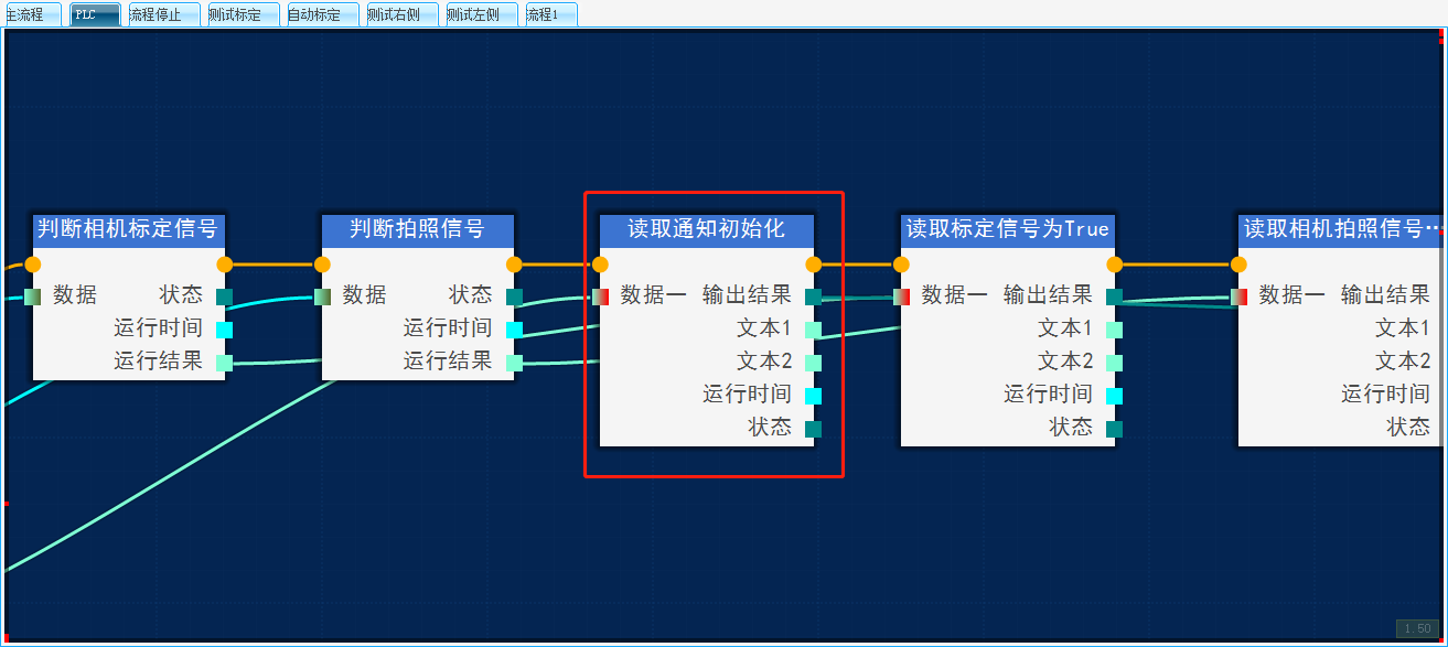 步骤9.判断标定信号:判断PLC通知初始化首先使用类型转换将标定地址结果转换为字符串