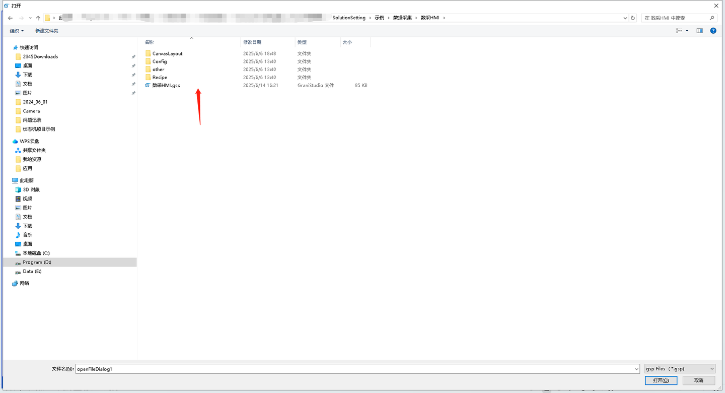 2.导入“SolutionSetting\示例\数据采集\数采HMMI”文件夹内的数采HMI.gsp文件