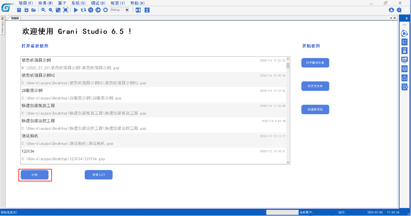 1.打开GraniStuido平台软件,点击示例按钮