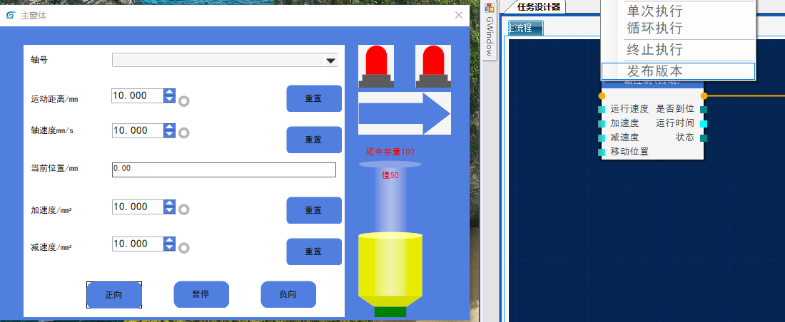 步骤二 通过主界面菜单栏 任务---发布版本 按钮将当前工程发布为运行版本。