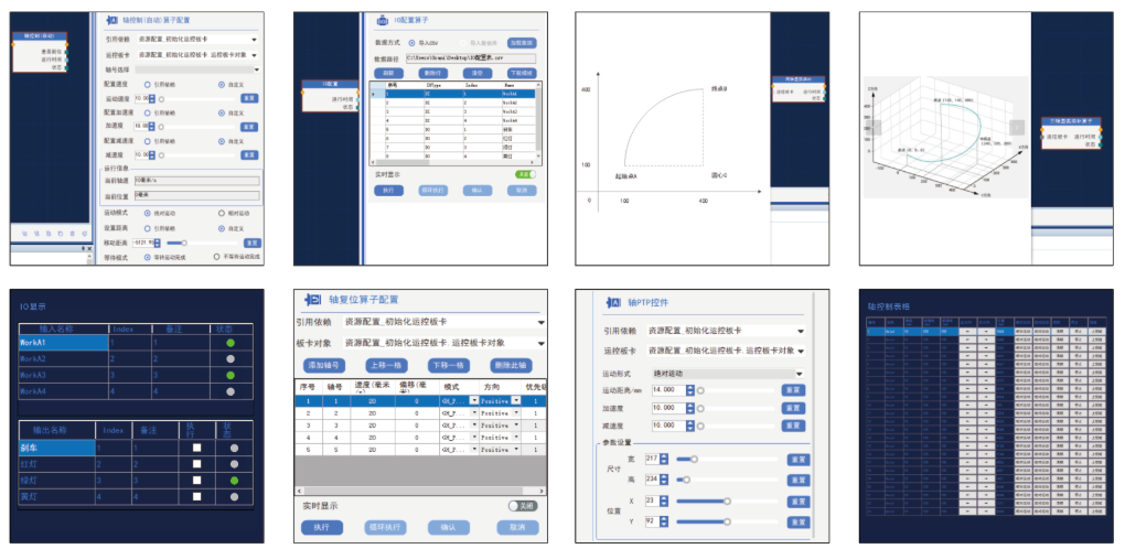 轴复位、IO读写控制、点位运动、两轴插补、三轴插补、轴状态读取等算子和配套的控件,帮助用户快速实现运动控制项目,让运动控制软件实现更简单更高效。工具通过海量项目验证,具有高精度、高速度、高实时性和高可靠性。可实现状态机控制模式、事件-响应处理机制、高性能并行处理、顺序结构、队列消息模式、主从模式编程。