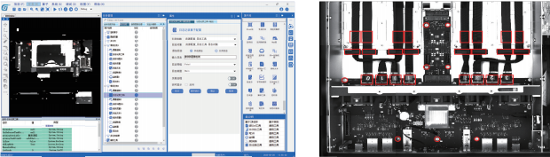 车载动力电池的组装关乎到电动汽车的安全使用,绝缘板是电池组之间一种重要的保证电池安全使用的组件,项目使用GS软件高精度视觉定位以及检测算法,检测绝缘板安装方向以及正反。