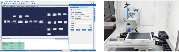用户通过“主任务设计器”拖拽功能算子(如轴控制算子、光源开关算子),以数据流连接方式构建控制逻辑,无需编写一行代码。