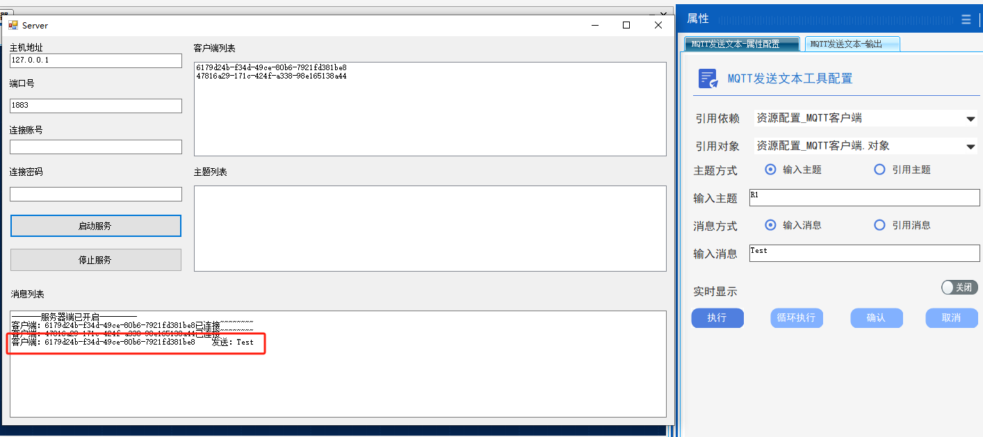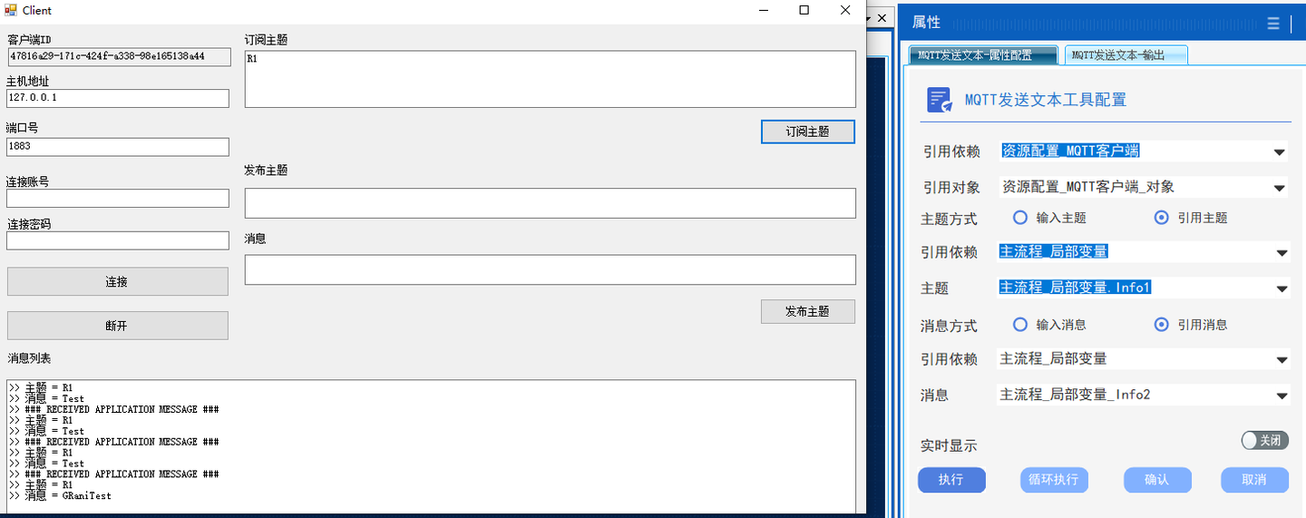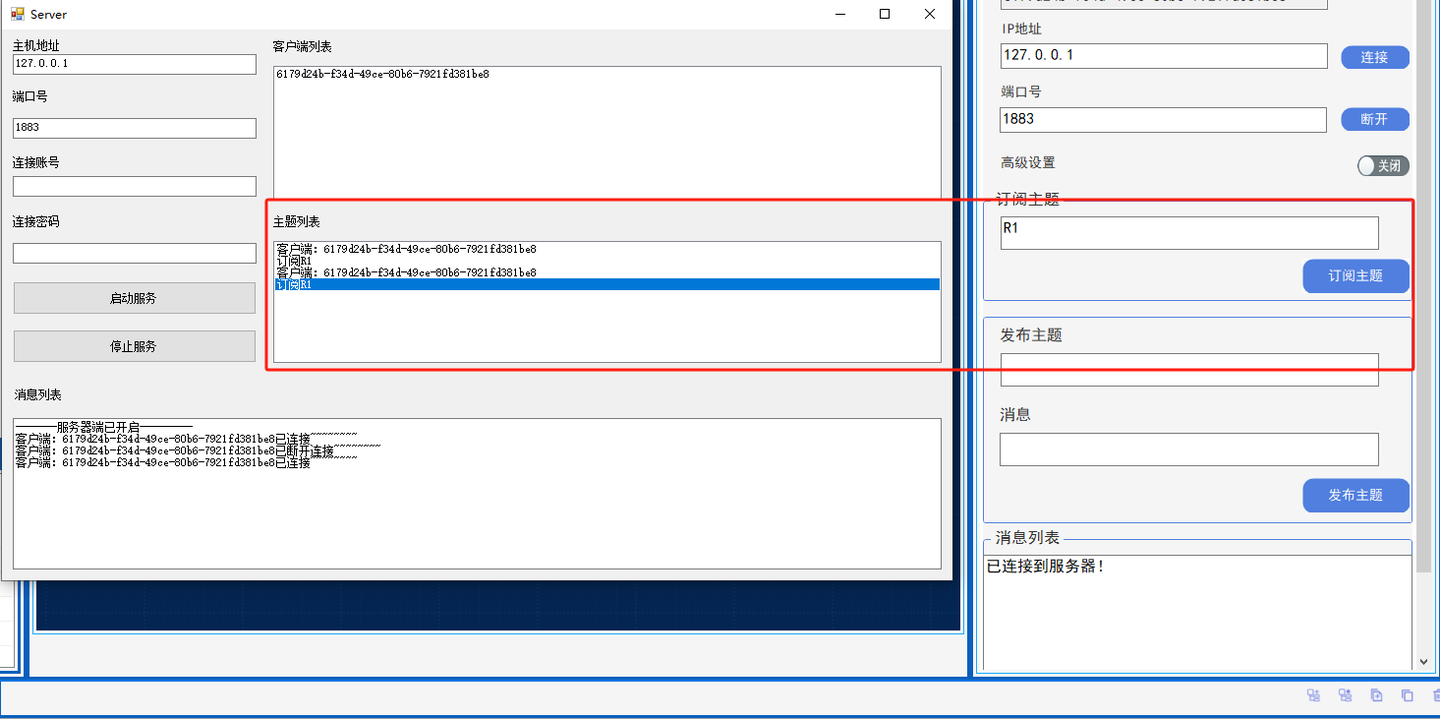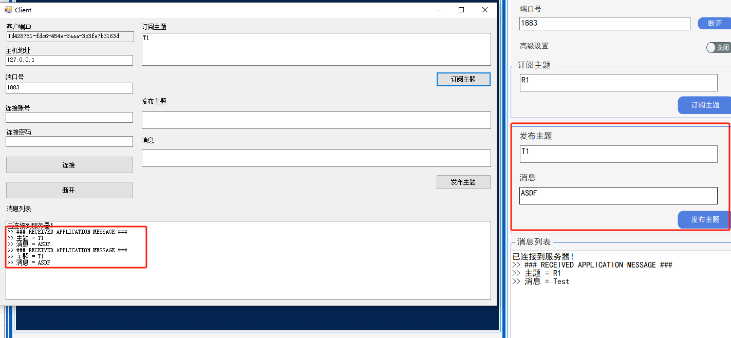 因为客户端2订阅R1主题,发送文本发送的主题为R1 消息为GRaniTest。正常发送主题消息