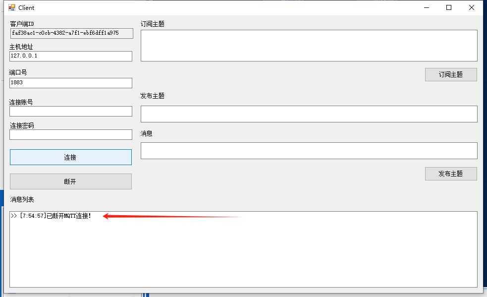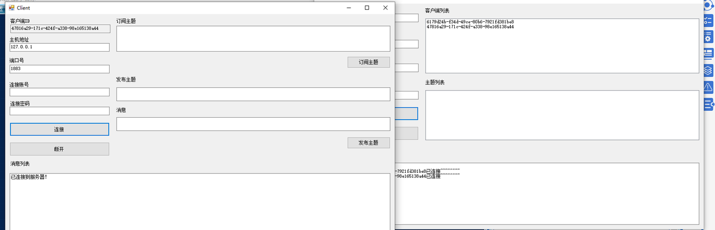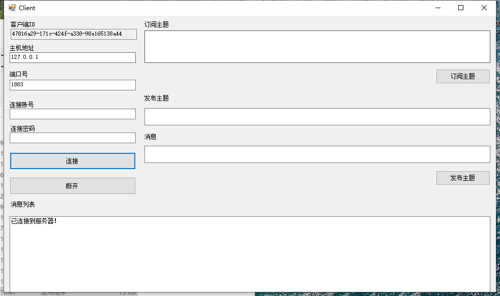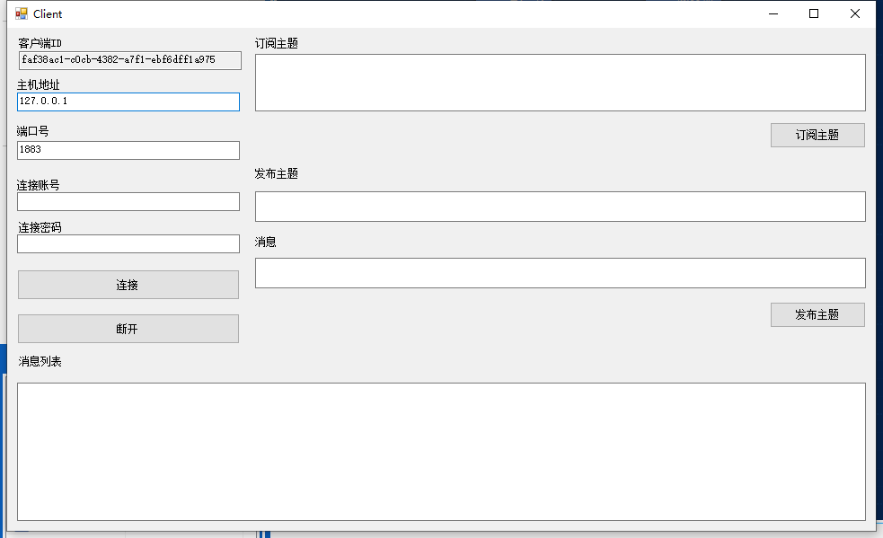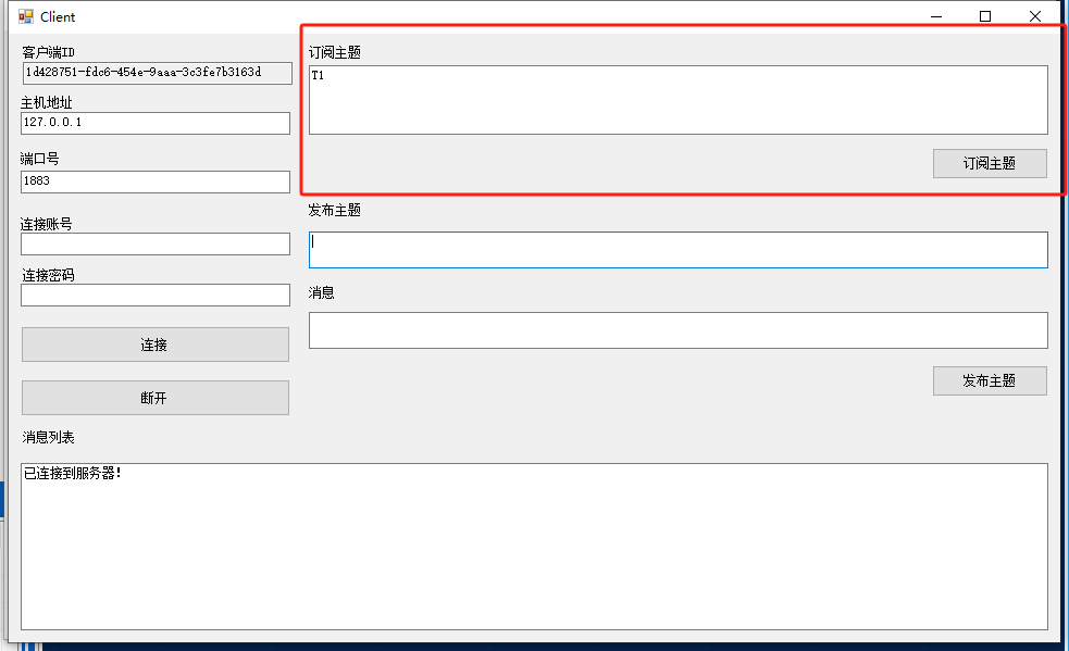需要发送消息必须有主题,需要发布主题必须消息,如用户输入主题当前客户端未发布将自动发布该主题消息。
