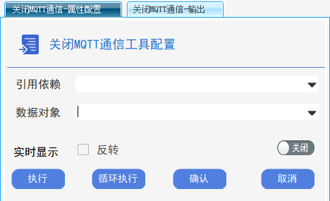 MQTT关闭算子将代理MQTT服务器或客户端关闭通信功能,可通过引用依赖配置MQTT服务器或客户端,如内部引用MQTT服务器将停止监听,禁止发送消息和客户端的连接.如为MQTT客户端将停止需MQTT服务器的连接,停止发送消息。