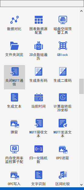 GraniStudio平台是苏州格拉尼视觉科技有限公司推出的对标Labview的零代码工控开发平台,该平台支持MQTT服务器,客户端,发送文本,接收文本和关闭MQTT通信。这几个工具算子的介绍如下: