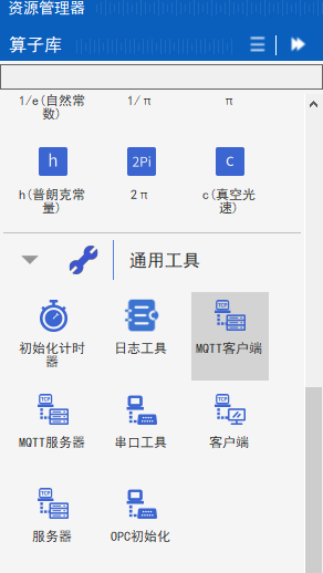 MQTT客户端属于资源管理器算子部分,归属于资源管理器通用工具