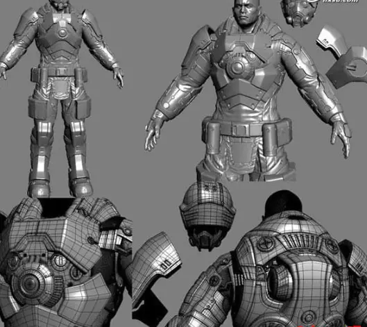 接下来的步骤是在3ds Max中制作一个坚硬表面的模型,并用ZBrush对一些部分进行雕刻。