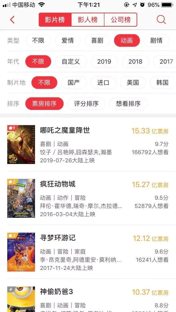 近期热映的动漫电影有《哪吒之魔童降世》,《白蛇缘起》,《大圣归来》等