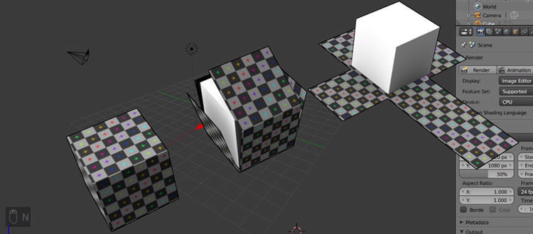 在此图像中,您可以看到保留了棋盘格图案,并且我们在立方体的正面周围有一些不错的连续边。在练习和展开更多内容时,您将了解“隐藏”接缝的最佳位置是使它们不那么明显。