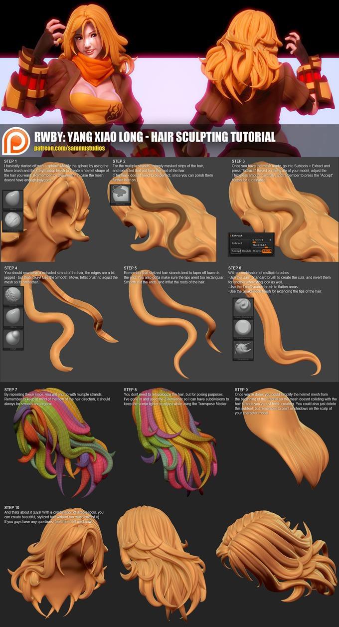 本文介绍了3D建模中制作头发的三种方法,重点讲解了在游戏和影视动画中常用的体块毛发的制作。通过在MAYA或MAX初步建模后,使用ZBrush的 Slash2 笔刷进行精细雕刻,以达到既经济又逼真的效果。