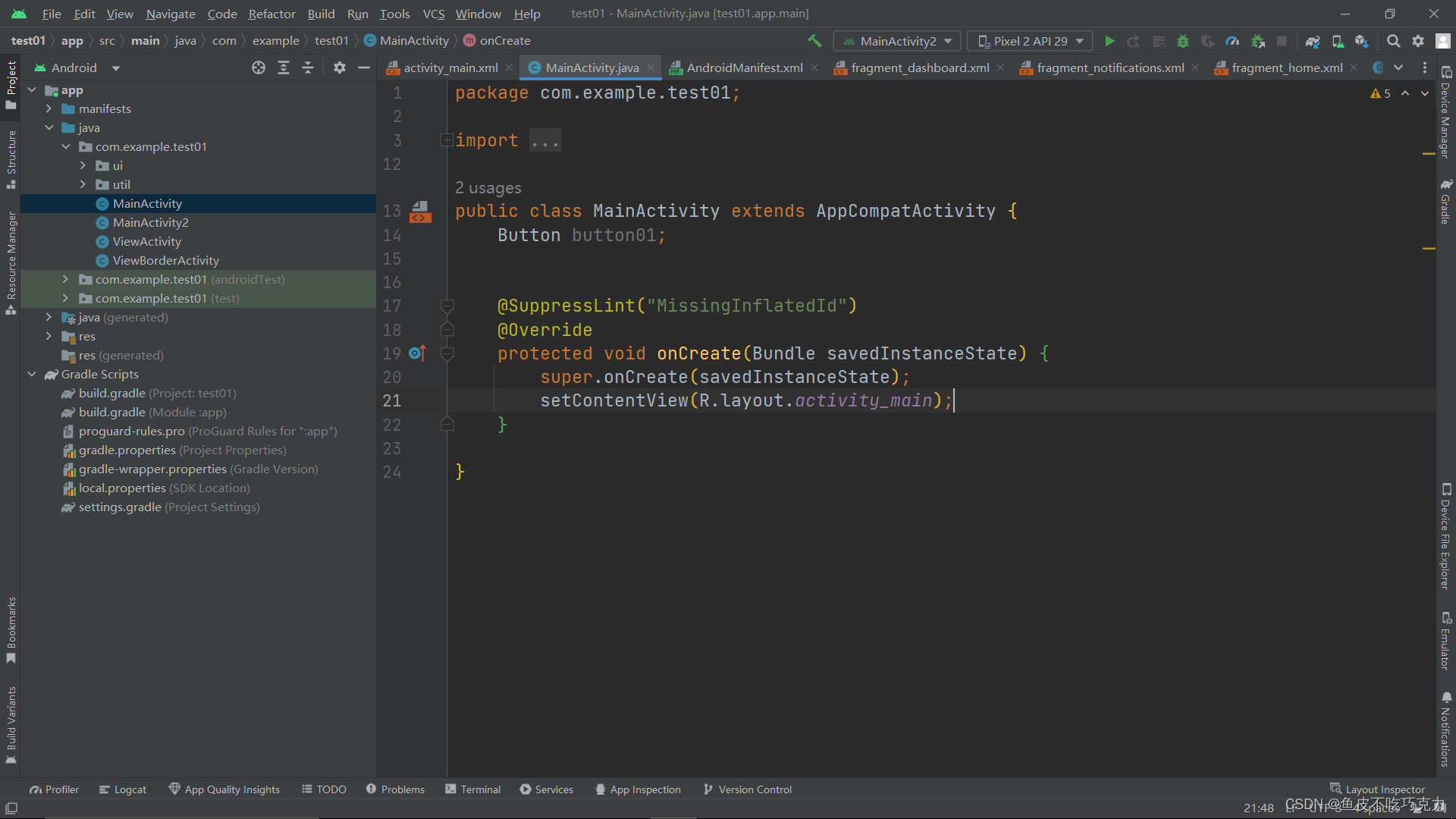 setContentView(R.layout.activity_main);//这里输入刚刚xml文件的路径。直接写R.layout.xxx