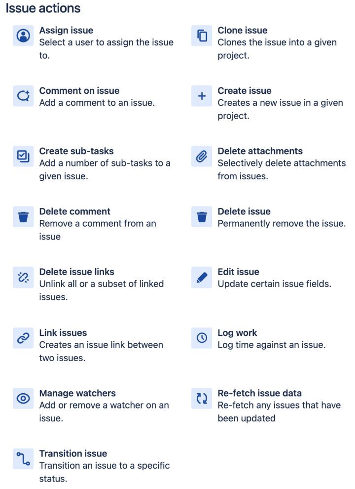 这类组件没有什么特别的基本上就是 Jira 功能操作了,分成了四类: