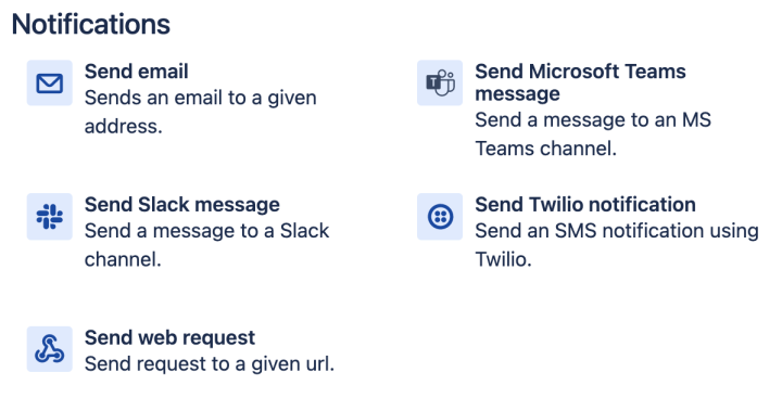 上述规则详情定义好以后就是 Jira Automation 功能的重头戏规则的过程定义了。Jira Automation 将规则抽象成了四类组件:
