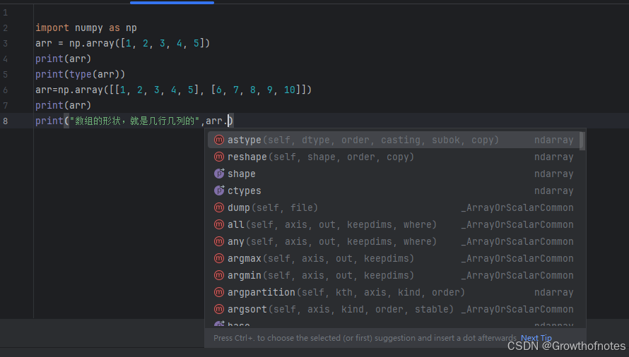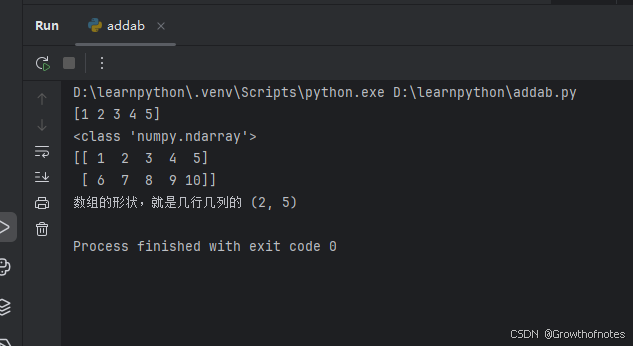 2、打印数组的结构类型 numpy.ndarray