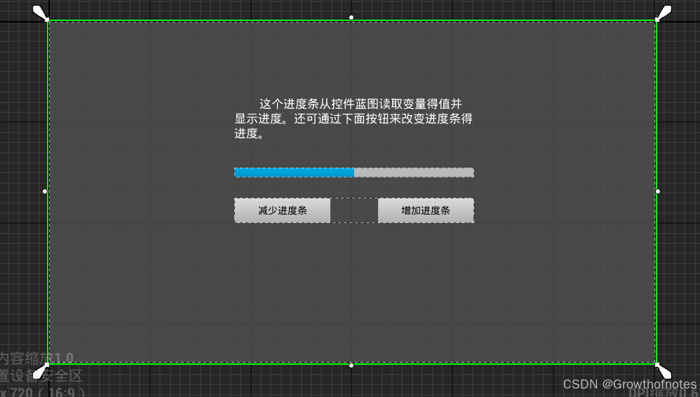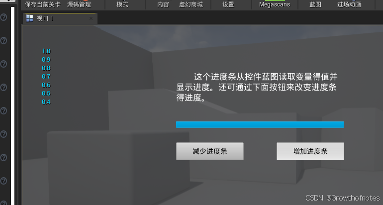 这个进度条从UMG蓝图中的一个内部变量读取并报告其当前值。