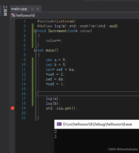 如果你现在编译这个程序,你不会创建两个变量a和ref,只有a。我们现在能做的就是把ref当成a使用。