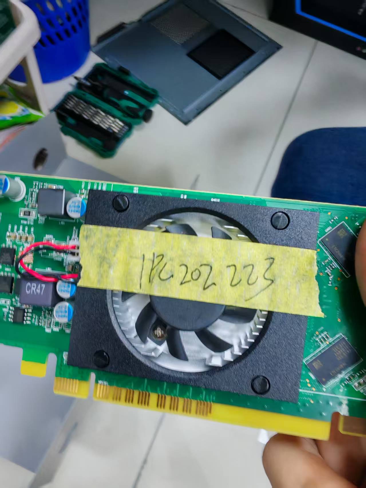 第二天就陪同浪潮售后去解决问题。与他沟通了解,关于显示器的问题,一般都会先看显卡。拆开机箱后,我俩都有些震惊。