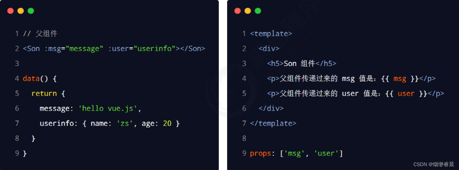 props 是组件的自定义属性,允许在使用自定义属性时为当前组件指定初始值。在封装通用组件的时候,合理地使用 props 可以极大的提高组件的复用性! 它的语法格式如下:
