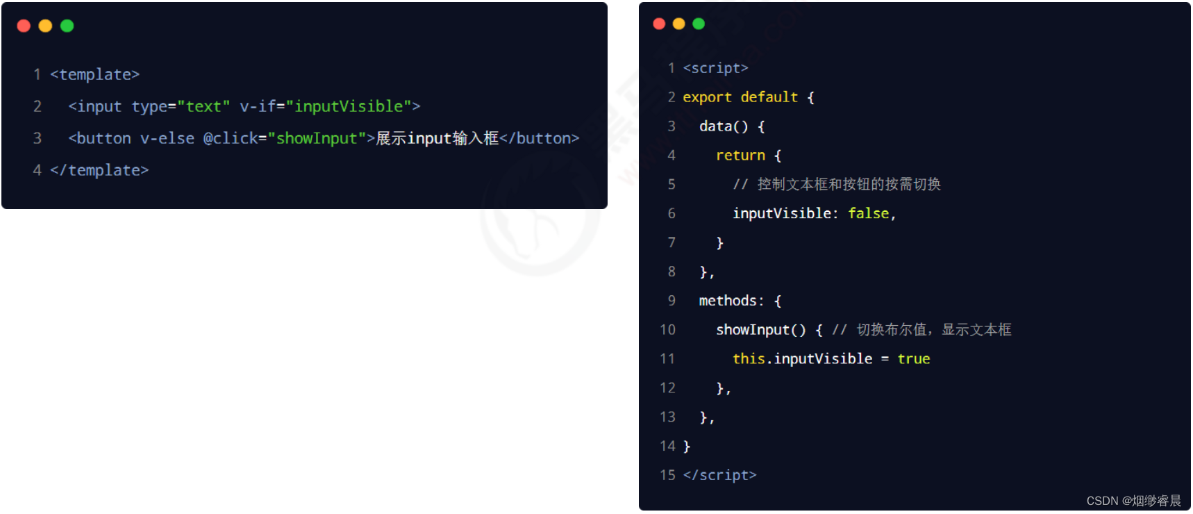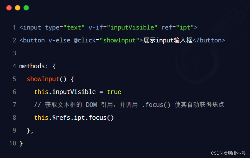 写个小例子,前期准备:通过布尔值 inputVisible 来控制组件中的文本框与按钮的按需切换。示例代码如下: