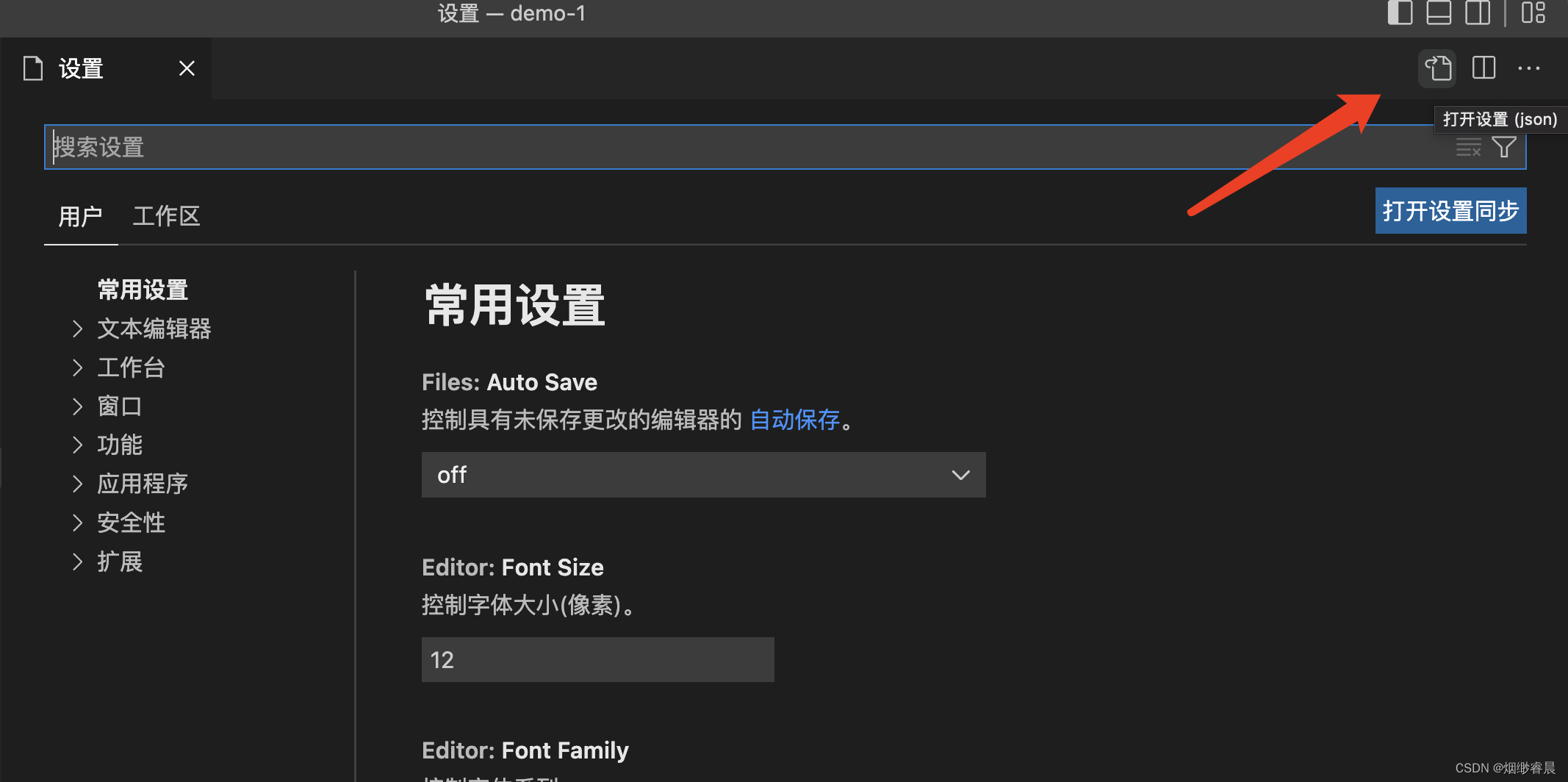 Tips:打开settings.json:
