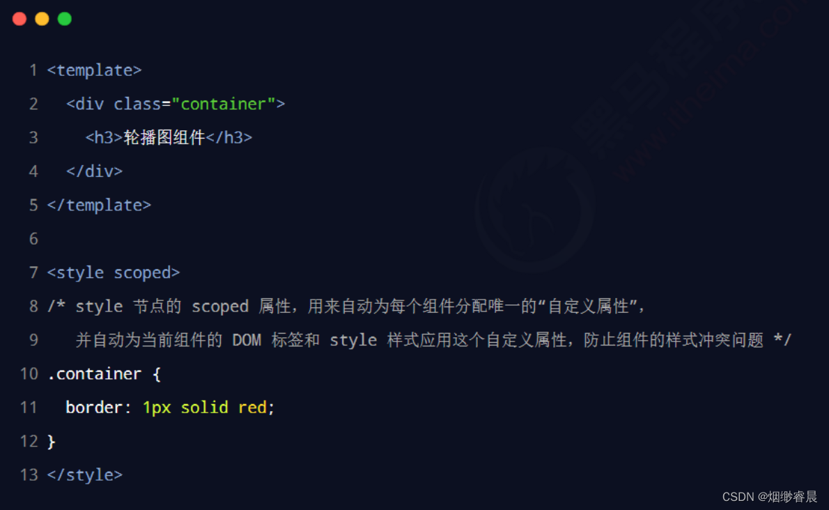 为了提高开发效率和开发体验,vue 为 style 节点提供了 scoped 属性,从而防止组件之间的样式冲突问题: