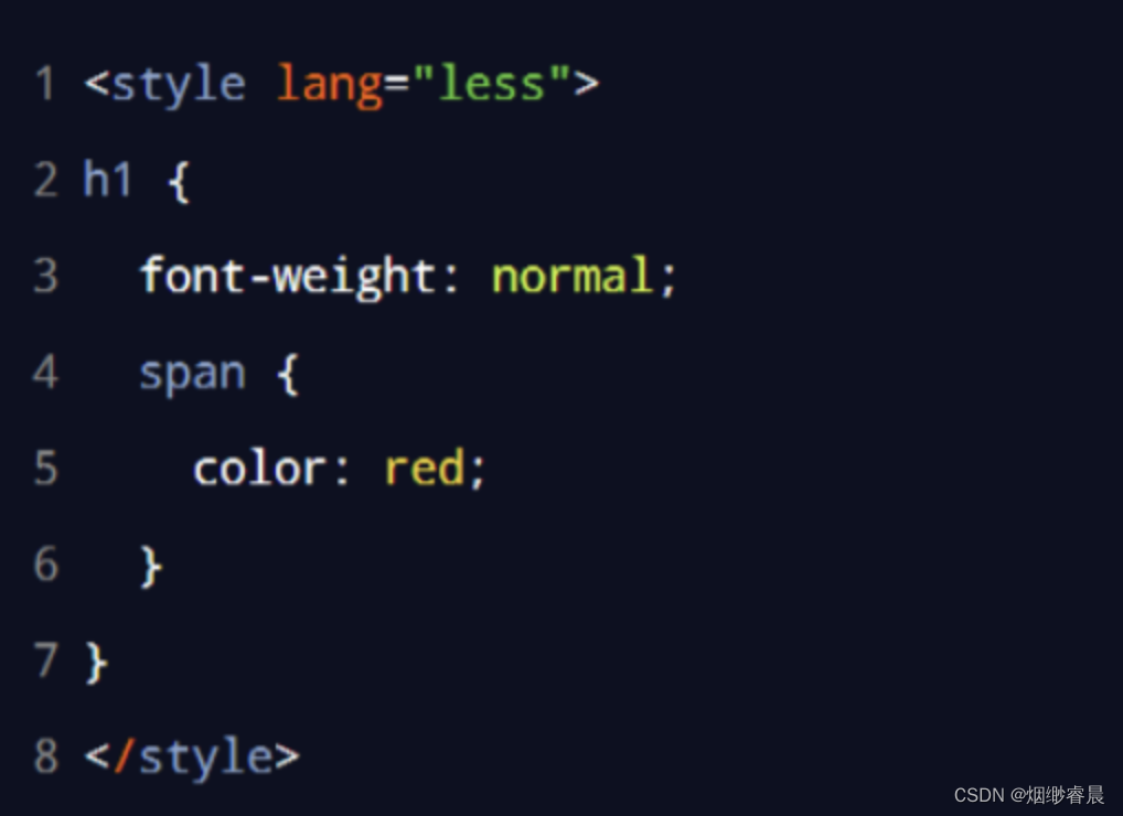 在<style>标签上添加 lang="less" 属性,即可使用 less 语法编写组件的样式: