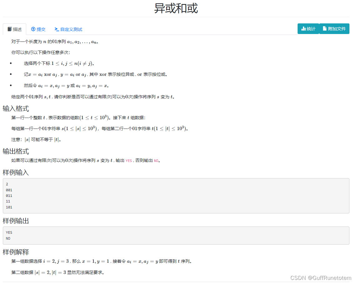 思考发现只要数列中有 1 就可以把所有数都变为 1 。同时可发现 s 到 t 是 t 到 s 的逆变化,因此可以将全部为 1 的数列当作中转数列。问题转化为判断两个数列中是否都有 1 或者全部为 0 。同时如果长度不一致,特判输出NO即可。