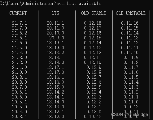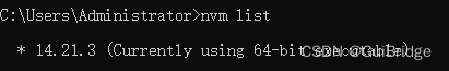 安装完成后,win+r输入cmd,在终端输入nvm list可以查看已经安装的node版本: